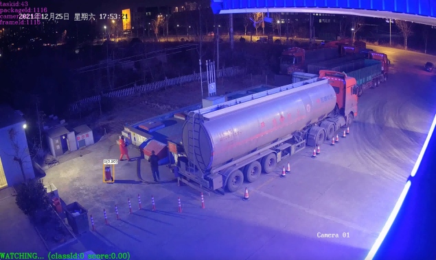 該項目采用邊緣端方案,部署鯤云AI視頻分析平臺,接入了現場的300路視頻,對油田生產過程中原油泄漏及漏油面積計算、安全帽檢測、紅色工作服識別、采油設備運行狀態識別、非法入侵等作業風險及違規行為進行智能識別檢測,有效杜絕安全生產隱患。